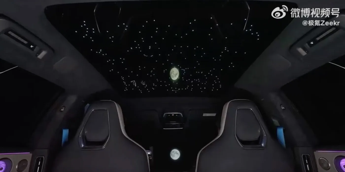 A belső tér szintén nagyot lépett előre – a márka egy különleges „Starry Sky Concert Hall” dizájnt mutatott be, amely csillagfényes panorámatetővel és luxusanyagokkal varázsolja el az utasokat. A „csillagos égbolt” hatás a mennyezeten mozgó fényeket, hullócsillagokat és a hold fényét vetíti az utastérbe – egy gombnyomással aktiválható, így a ZEEKR 001 egyedi, szinte művészi hangulatot teremt.