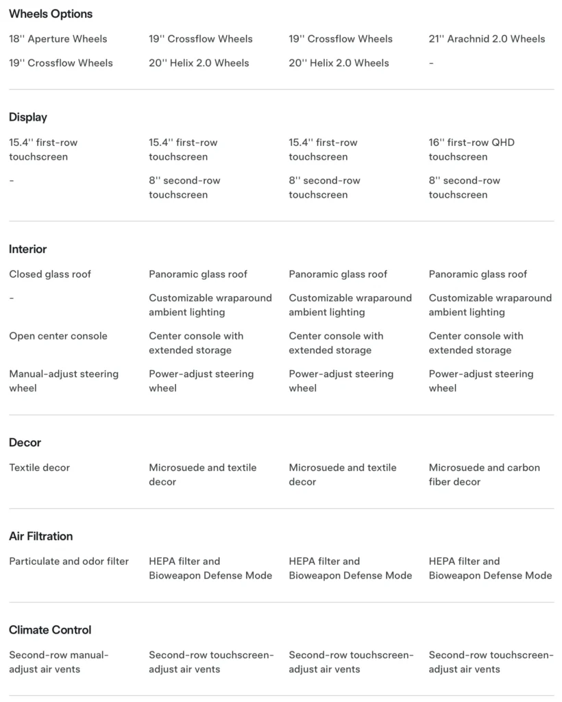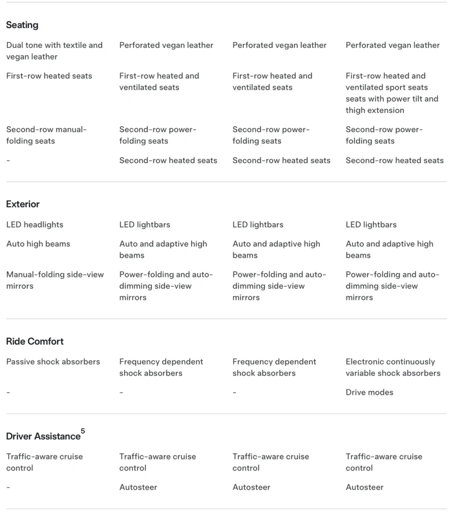 Az új alapmodellek sok funkciótól megfosztva kerülnek piacra. Eltűnt a panoráma üvegtető, az ambient világítás, a hátsó kijelző, a prémium hangrendszer, sőt még a motorosan behajló tükrök is. Az új középkonzol egyszerűbb lett, az akkumulátor 69 kWh-ra csökkent, a gyorsulás és a hatótáv is visszalépést mutat.