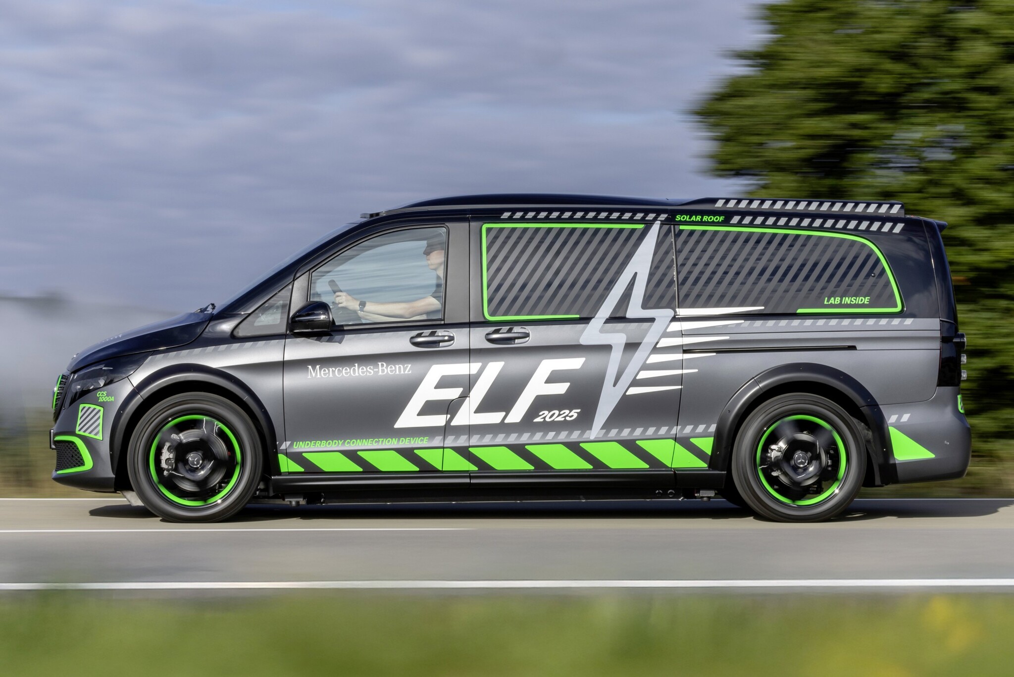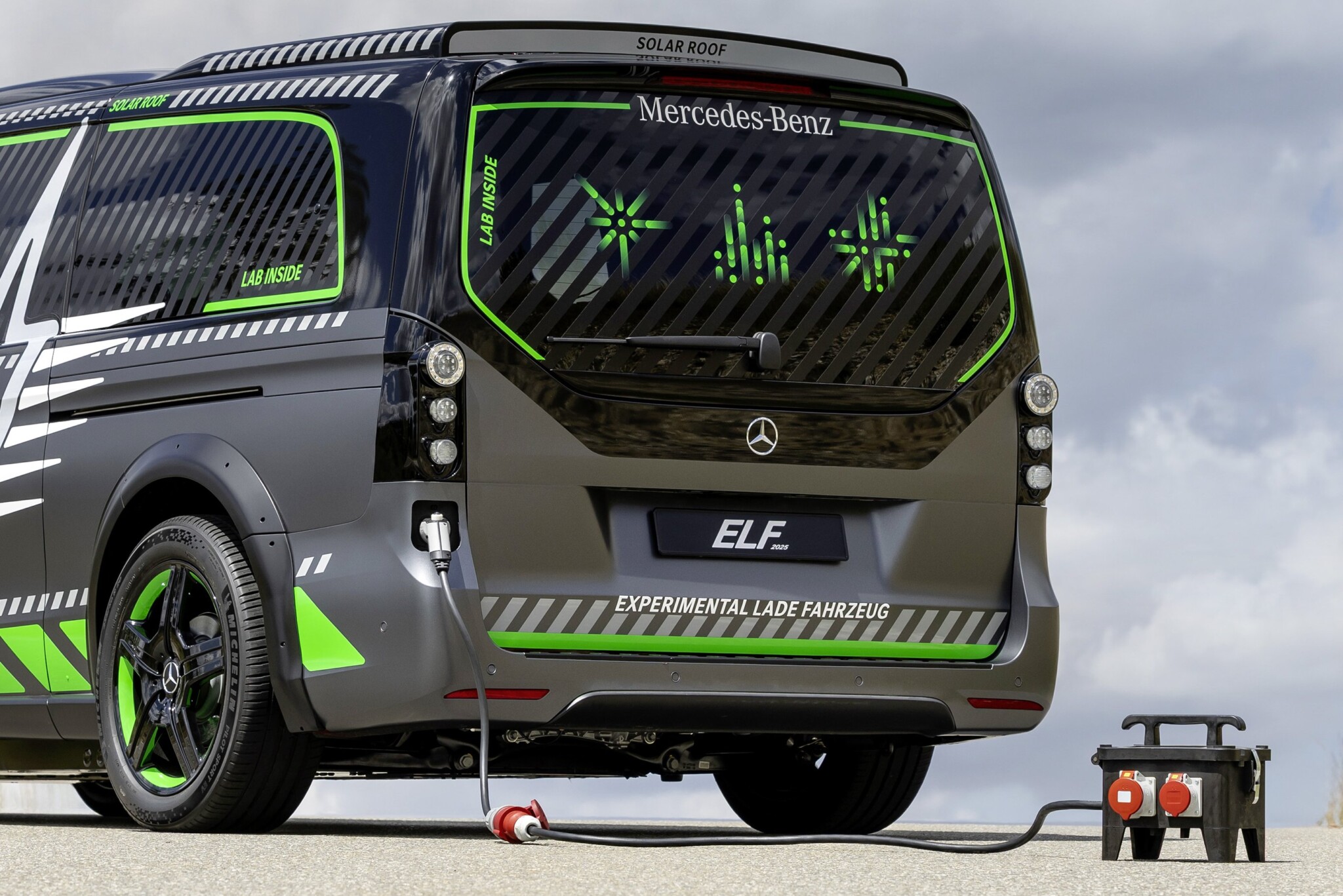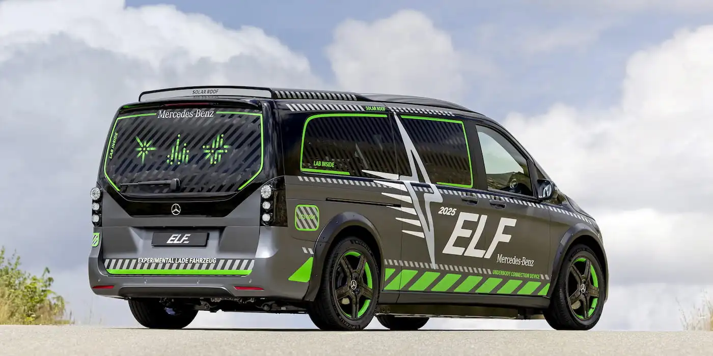 Első pillantásra az ELF akár egy átalakított V-Class kisbusznak tűnhet, valójában azonban egy teljesen mobil töltőállomás. A jármű öt különböző töltőporttal rendelkezik, és egyszerre támogatja az ultragyors, kétirányú, vezetékes és induktív töltést.