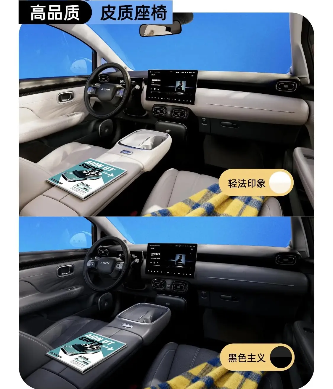 A belső tér letisztult és minimalista, ahogy azt a modern kínai elektromos autóktól megszoktuk. A lebegő hatású központi kijelző és a kompakt digitális műszeregység futurisztikus, mégis átlátható elrendezést biztosít.